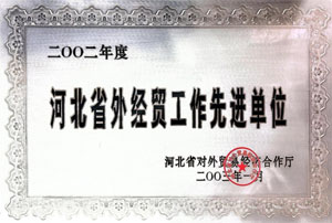 被河北省对外贸易经济合作厅授予“2002年度河北省外经贸工作先进单位”。