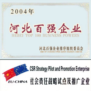 被河北百强企业推荐委员会授予“2004年河北百强企业”,同时荣膺“中欧社会责任战略试点及推广企业”。